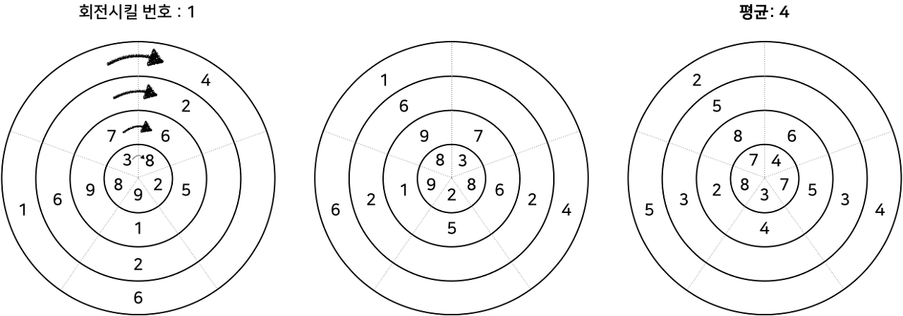 temp[i] = array[idx][(i + dist) % m] # 왼쪽으로 이동