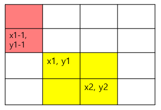 하지만 해당 문제에서 제시된 표의 크기가 매우 크기 때문에 하나하나 탐색하면서 더해주면 시간초과 문제가 발생하게 된다. 따라서 시간 초과 문제를 해결하기 위해 좀 더 효율적인 방법을 생각해야 한다.